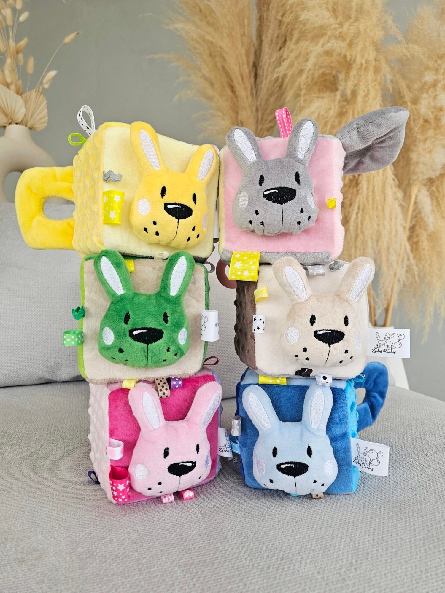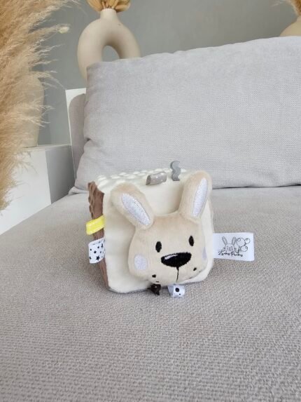 🩵🐰 Minkštas kubas mažyliui – rankų darbo sensorinis žaislas „Zuikutis ir Spalvų pasaulis“! 🐞✨